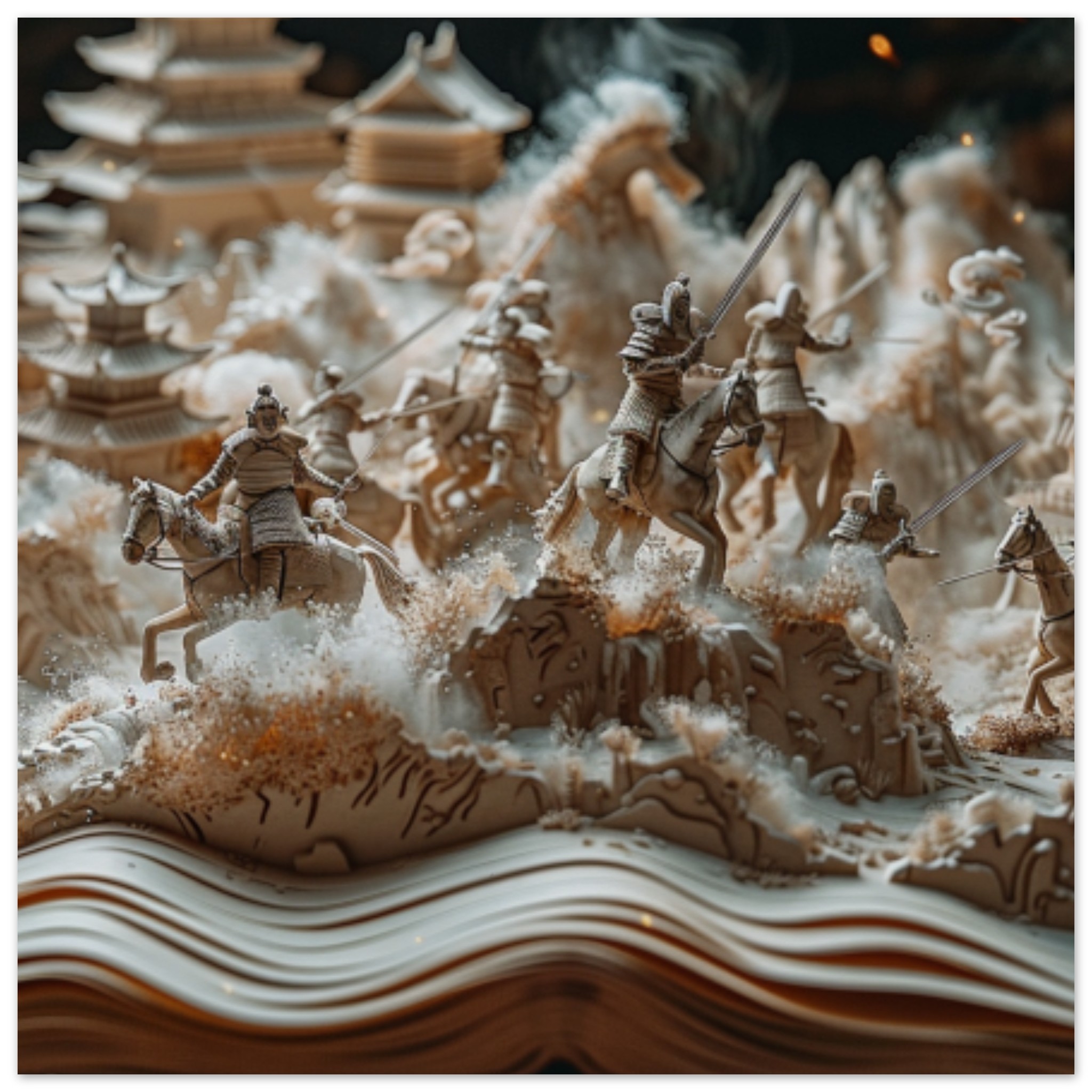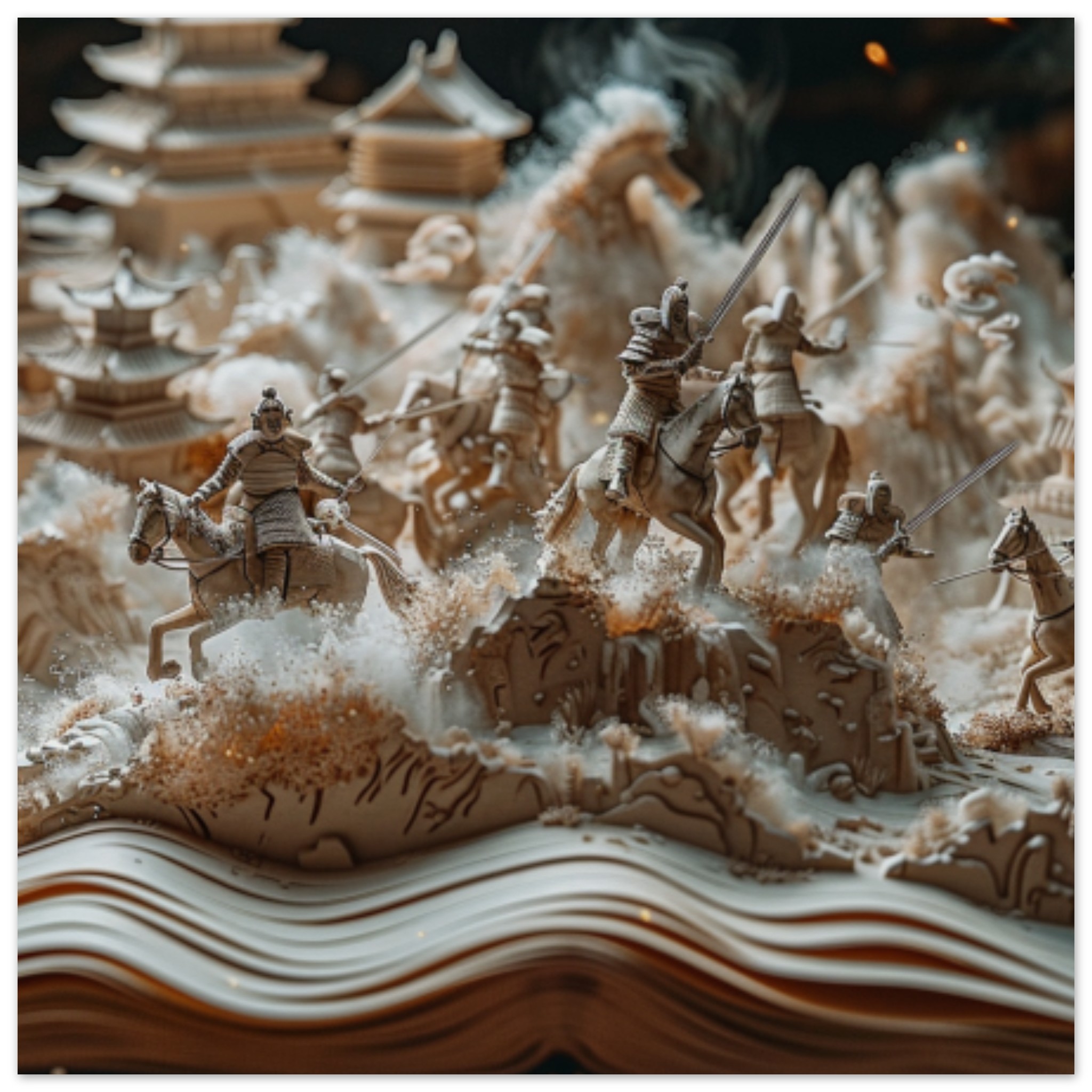 A winter-themed book cover featuring a statue of men riding horses. The book is predominantly grey with accents of brown and black. The statue depicts men on horseback, adding a historical and masculine element to the scene. The overall color scheme is muted and somber, evoking a sense of coldness and nostalgia. The image is not explicit or violent, suitable for all audiences. The composition is artistic and thought-provoking, with a toy horse and rider adding a whimsical touch. This unique and intriguing image is perfect for a diverse range of captioning tasks.