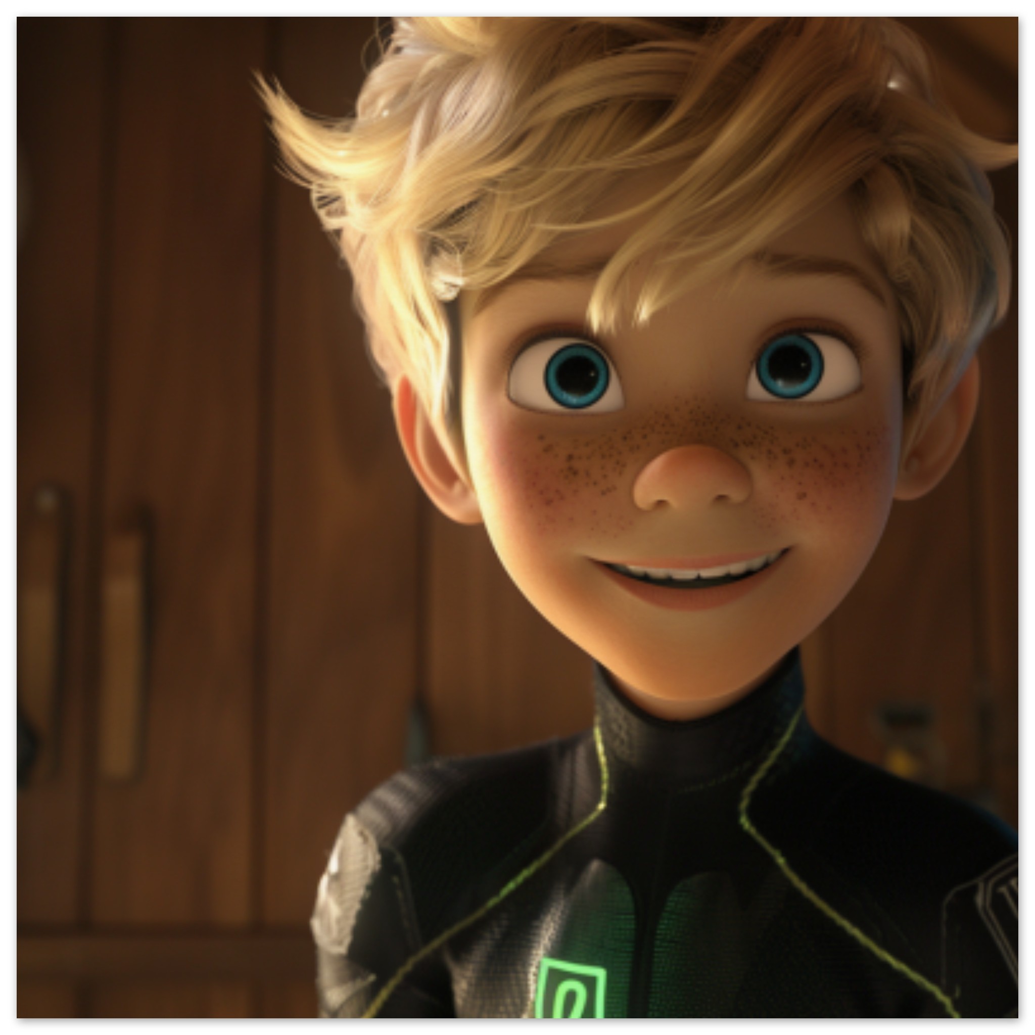 A cartoon character in a black suit is depicted in this image. The character is wearing a sleek black suit and appears to be smiling. The dominant colors in the image are brown and black, with a touch of gold as the accent color. The image features a toy figurine of a person, with a human face and a friendly expression. The background is also brown in color. The image is not in black and white. The object detected in the image is a person, taking up the majority of the frame. The overall theme of the image is playful and cheerful.