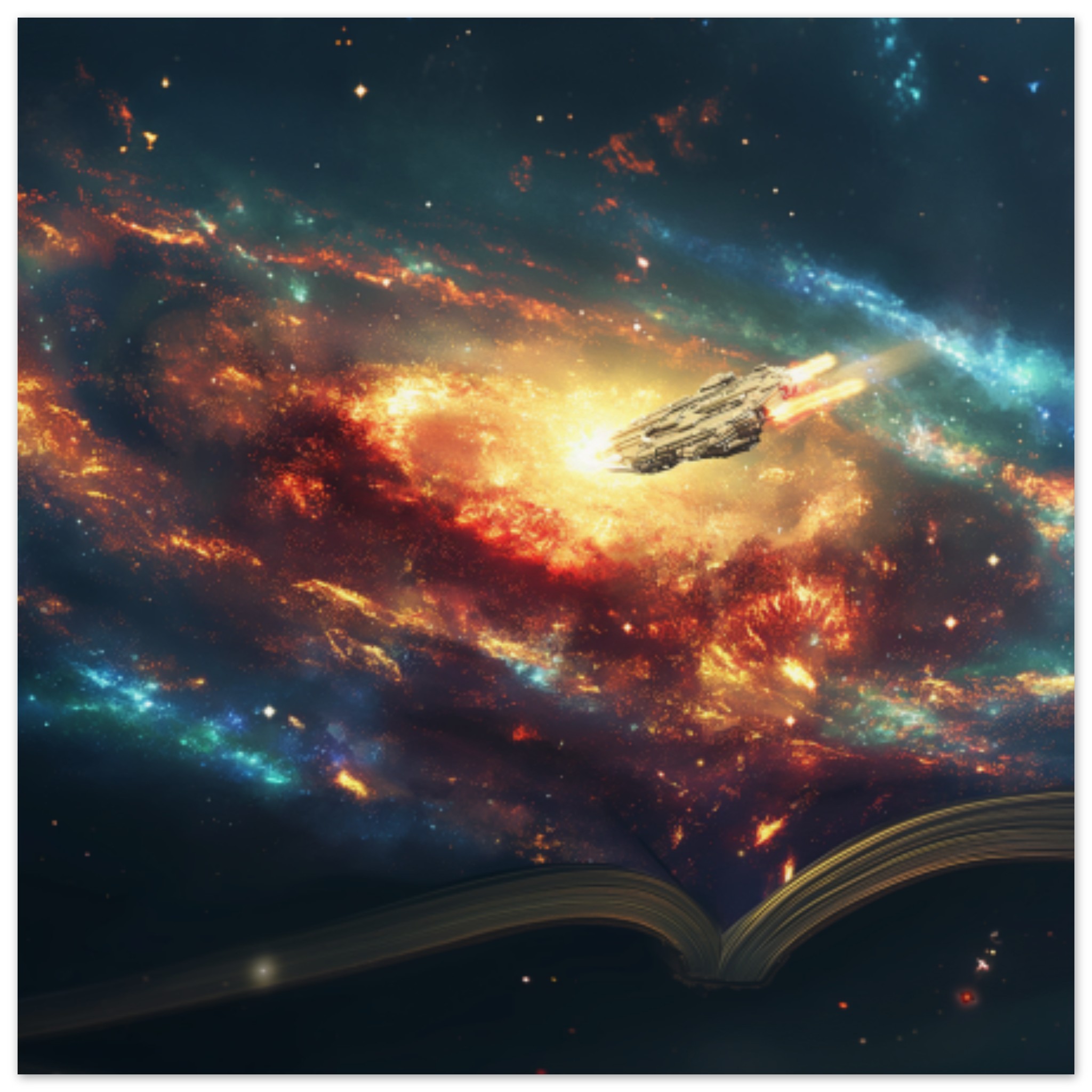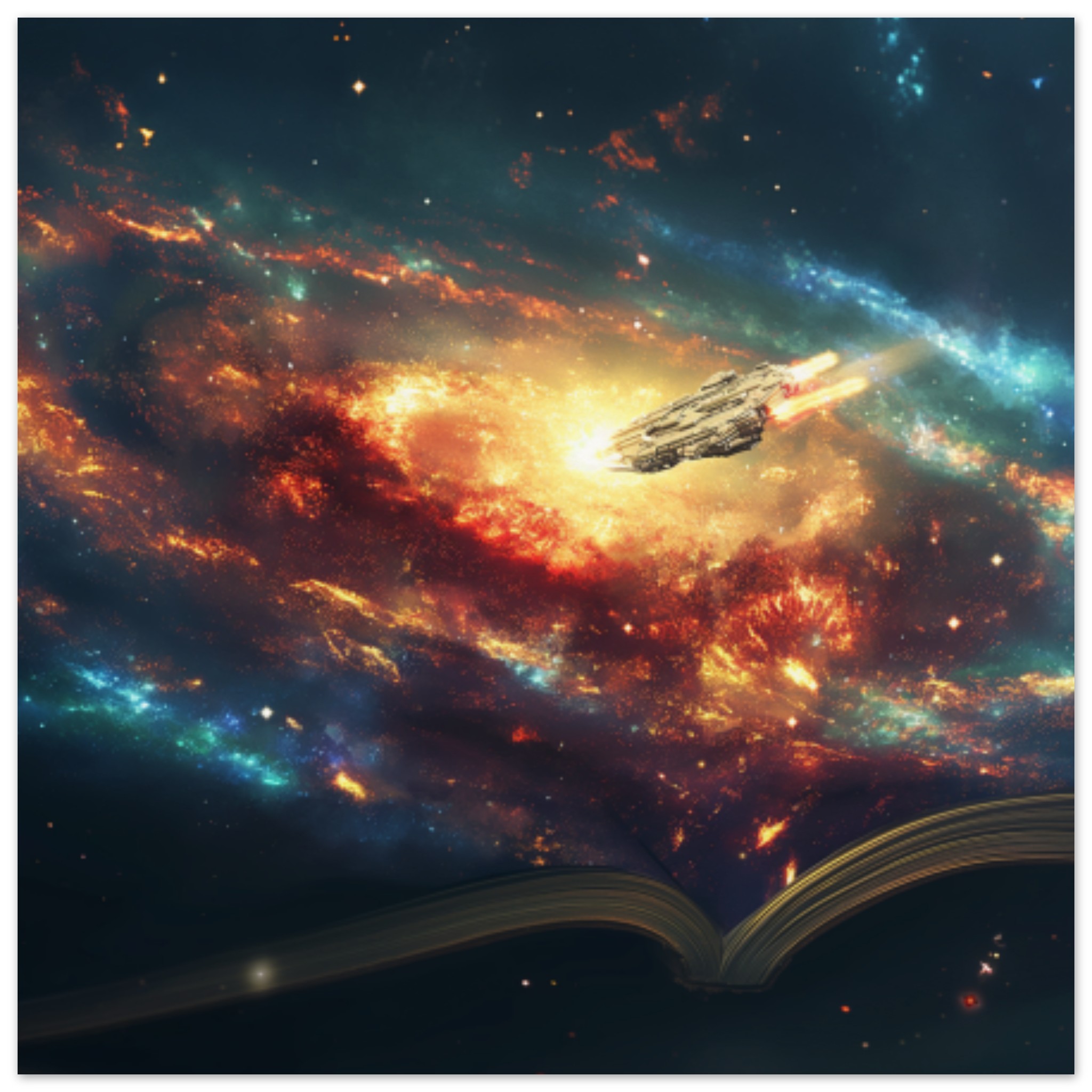 A captivating book cover featuring a stunning illustration of a space ship soaring through the sky. The background is a deep black color, making the brown spaceship stand out prominently. The spaceship appears to be traveling through outer space, surrounded by stars, galaxies, and celestial bodies. The scene evokes a sense of wonder and exploration, with a hint of mystery and adventure. The image is rich in astronomical elements such as nebulae, planets, and constellations, adding to the immersive experience of the viewer. The overall composition is visually striking and invites the viewer to delve into the world of the unknown.