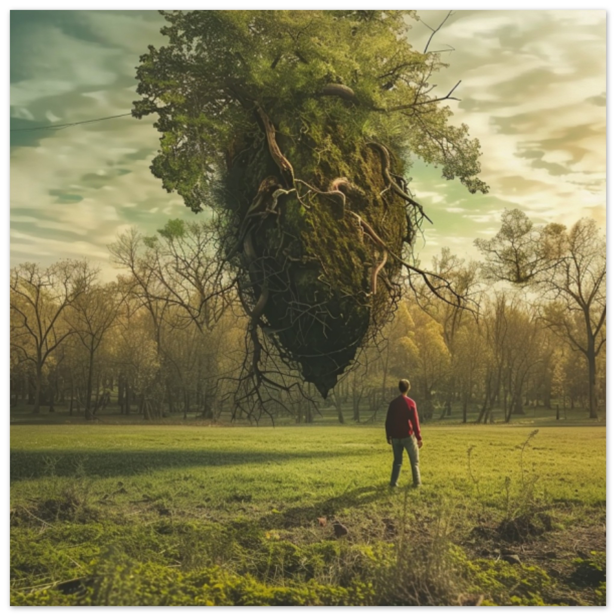 A man is standing in a vast field, surrounded by lush green grass and a beautiful tree with many branches. The scene is peaceful, with fluffy clouds scattered across the clear blue sky above. The man is positioned towards the center of the image, wearing casual attire and looking out towards the horizon. The tree in the background is tall and majestic, adding a sense of tranquility to the landscape. The vibrant colors of the grass and sky create a serene atmosphere, making this a perfect setting for a relaxing day outdoors.